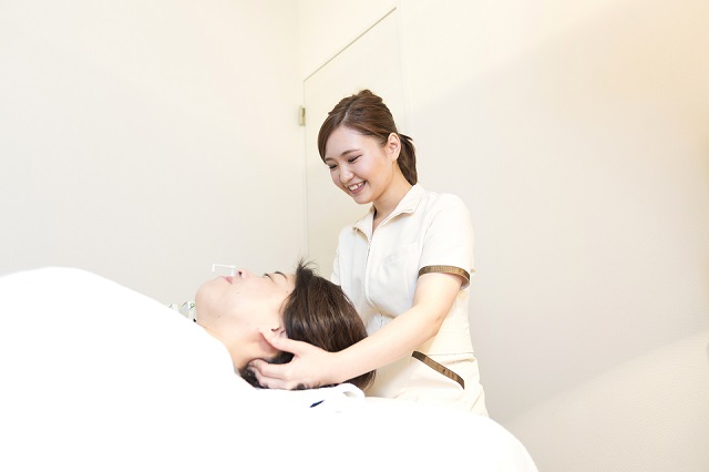 私が勤める美容サロンでは、痩身エステに加え、美容鍼によるフェイシャルケアを行っています。呉竹の選択科目で美容鍼灸を学び、この分野に進みたいと考えていたので入社後に提案し、新規メニューに取り入れていただきました。顔や頭、肩、腰などの経穴(ツボ)に鍼を打つ美容鍼は、美顔はもちろん、幅広い婦人科系の疾患を緩和します。